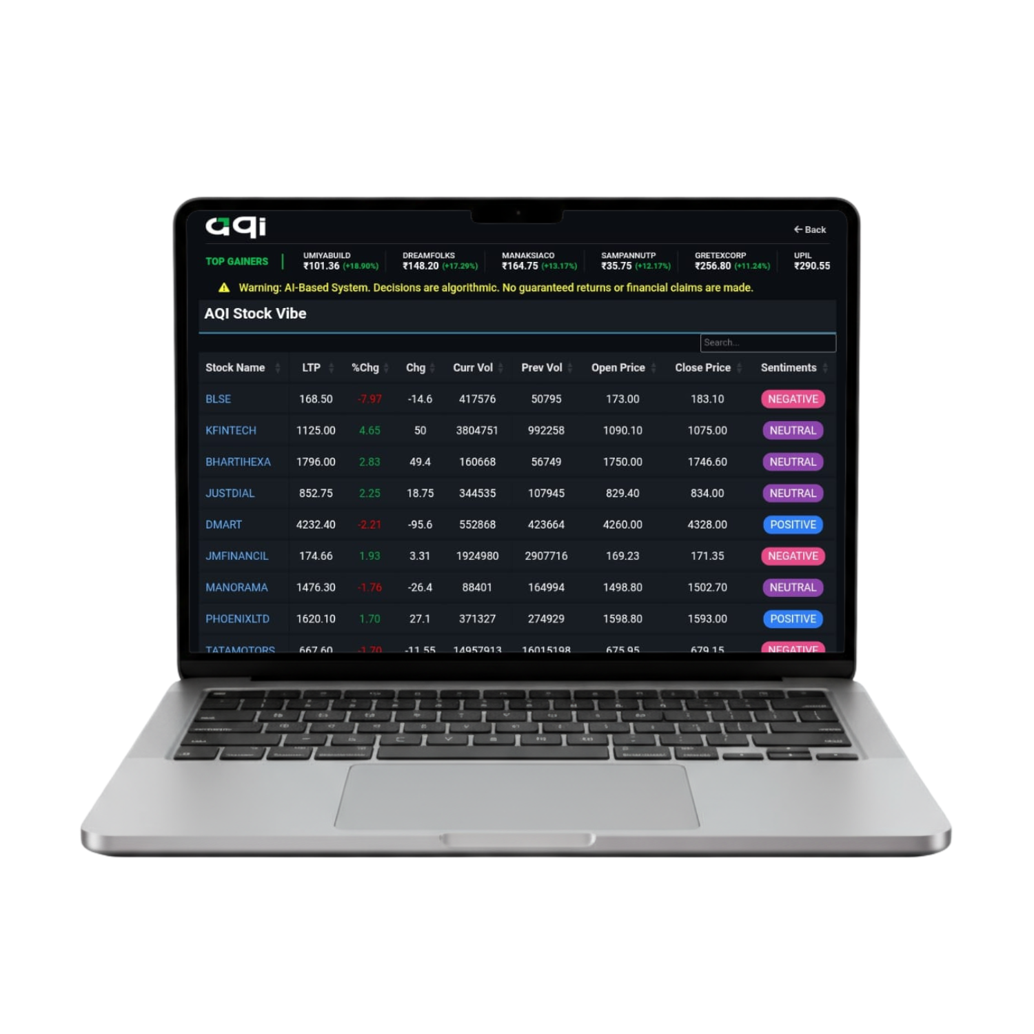 AQI is a fintech company that merges technology and finance to simplify the Indian stock market. With AI-powered tools, AQI delivers next-generation financial solutions that help individuals build passive income and long-term wealth through smart, automated, and disciplined systems.